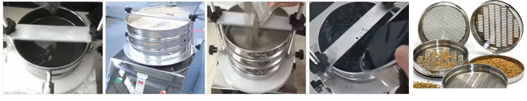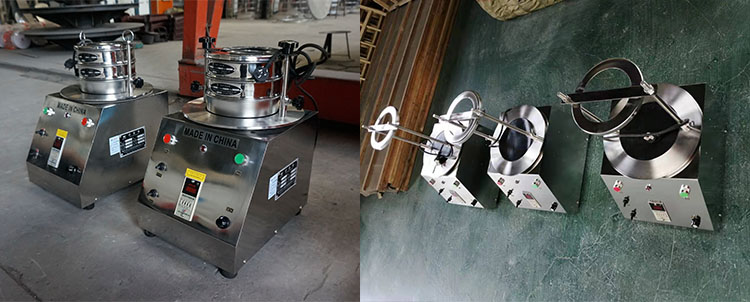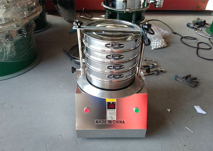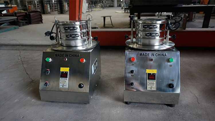 電磁振動篩工作時,采用電磁振動器用作振動源,振動經(jīng)底座傳遞至底座上由粗到細排列的一組標準試驗篩。同時,安裝在下部的振動電機對物料進行篩選和篩分,物料在標準試驗篩的篩面上振動,使小于篩孔尺寸的物料顆粒篩入下層試驗篩,并逐層篩分,每層試驗篩的顆粒尺寸相同,從而實現(xiàn)不同粒徑物料的分離。