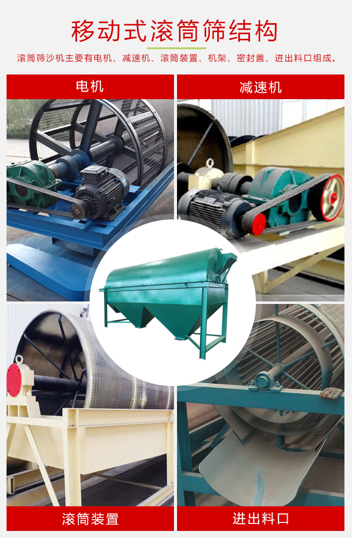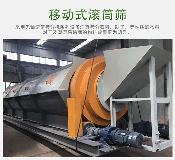 移動(dòng)式滾筒篩沙機(jī)被廣泛應(yīng)用于礦山、建筑、交通、化工等行業(yè)。滾筒篩沙機(jī)常用在粗細(xì)物料的分級(jí)篩選,從而提高物料的質(zhì)量。