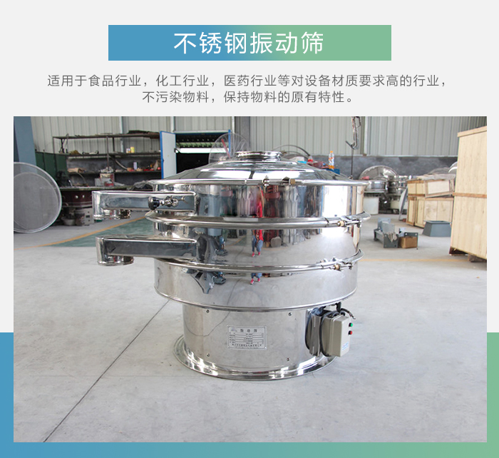 不銹鋼振動(dòng)篩多適用于食品行業(yè),化工行業(yè),醫(yī)藥行業(yè)等對(duì)設(shè)備材質(zhì)要求高的行業(yè),不污染物料,保持物料的原有特性。不銹鋼振動(dòng)篩里外拋光,干凈,衛(wèi)生,無死角。不銹鋼振動(dòng)篩整機(jī)采用304材質(zhì),因此食品用振動(dòng)篩也叫食品不銹鋼振動(dòng)篩。