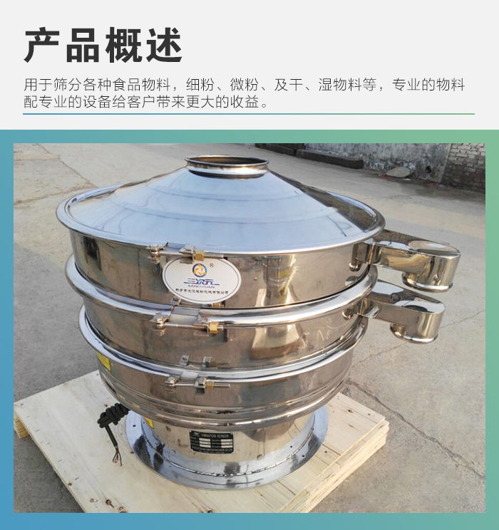 主要用于篩分各種食品物料,細(xì)粉、微粉、及干、濕物料等;很自然達(dá)到客戶要求,本產(chǎn)品精致實(shí)用,專業(yè)的物料配專業(yè)的設(shè)備會(huì)給客戶帶來更大的收益。