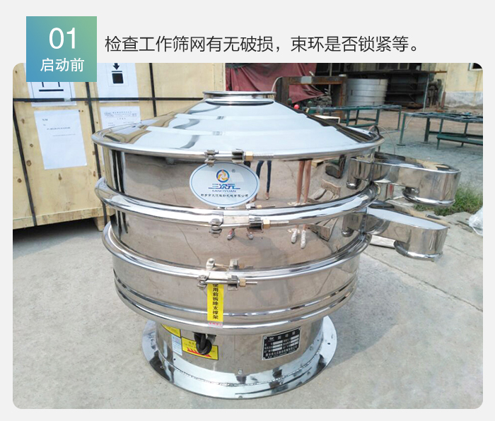 1、啟動(dòng)前:(1)檢查工作篩網(wǎng)有無破損,如有破損,需立即更換完好的篩網(wǎng);