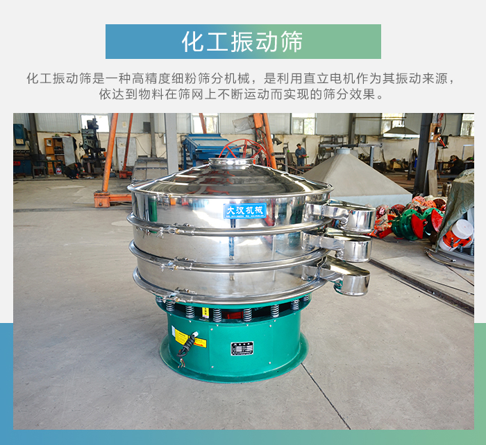 新鄉(xiāng)大漢的化工振動(dòng)篩是一種高精度細(xì)粉篩分機(jī)械,是利用直立電機(jī)作為其振動(dòng)來源,依達(dá)到物料在篩網(wǎng)上不斷運(yùn)動(dòng)而實(shí)現(xiàn)的篩分效果,其噪音低、效率高,全封閉結(jié)構(gòu)。