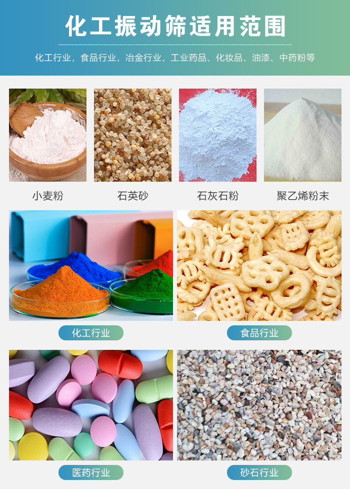 2.篩分精度高、效率高,任何粉、粒、粘液類均可使用。